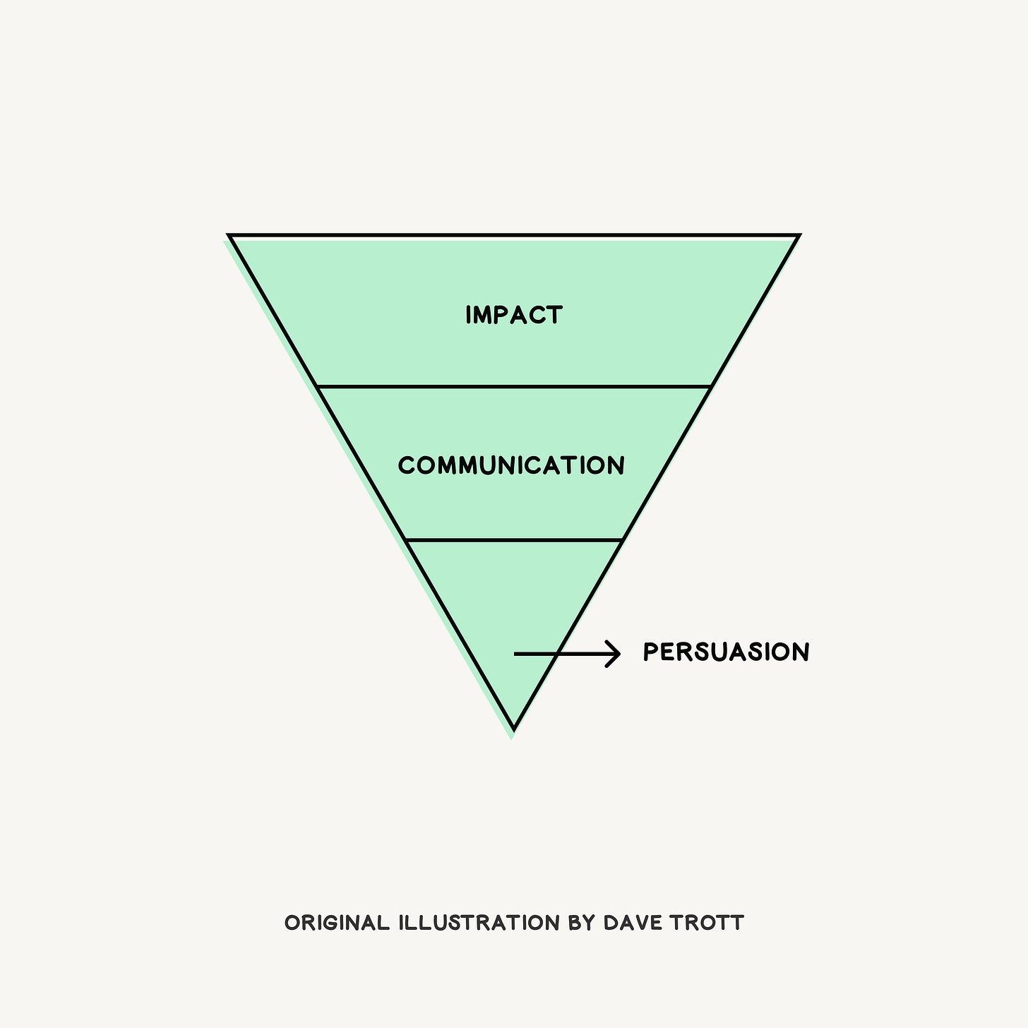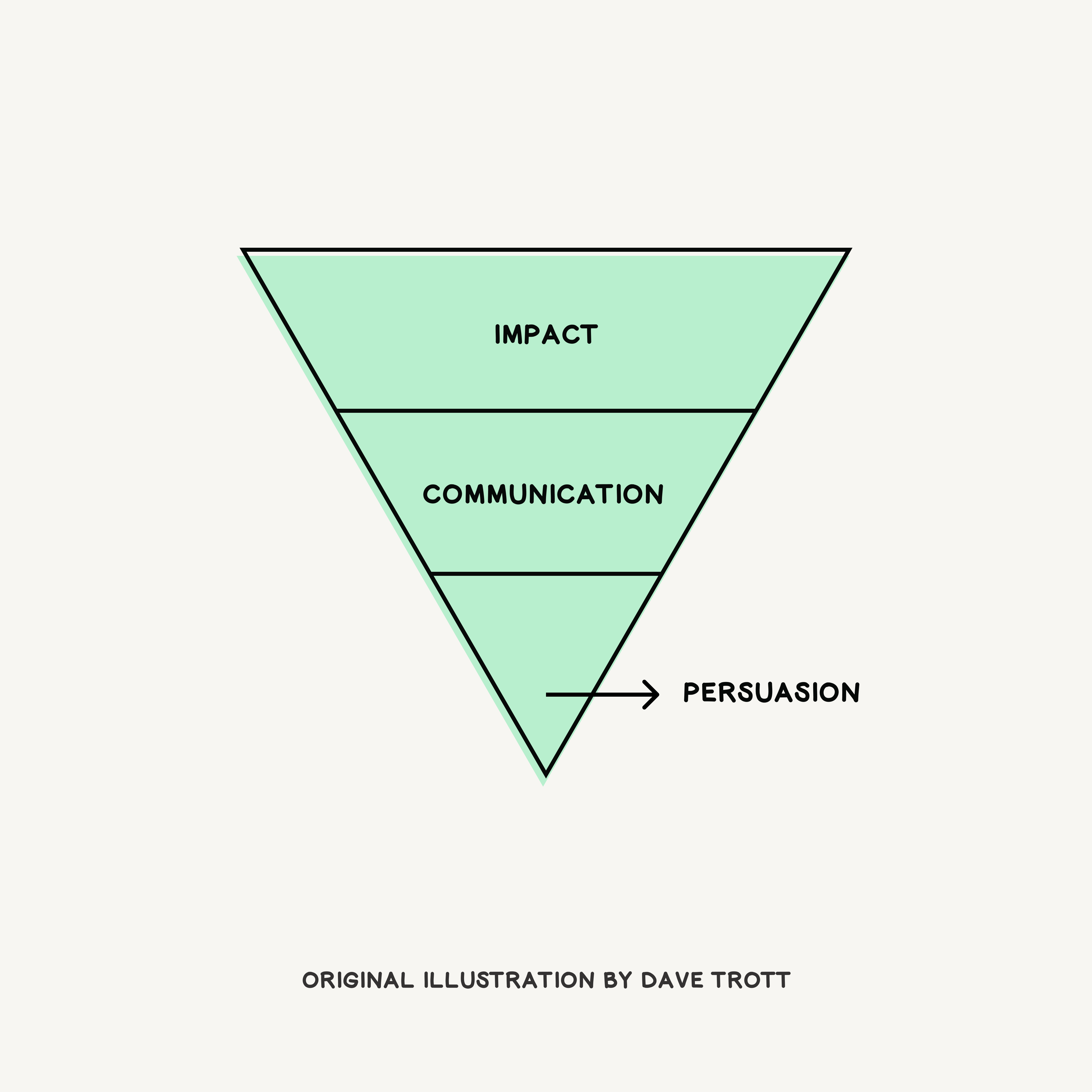 The more I observe the patterns, the more I realize this is true. It’s all about impact (hook), communication (message/body), and persuasion (call to action). Dave Trott (creative director, copywriter, and author of Predatory Thinking) explained the concept in his video here.